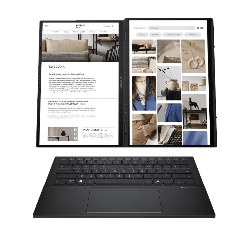 Unlike standard laptops, the Zenbook Duo offers two fully functional touchscreens, allowing you to: