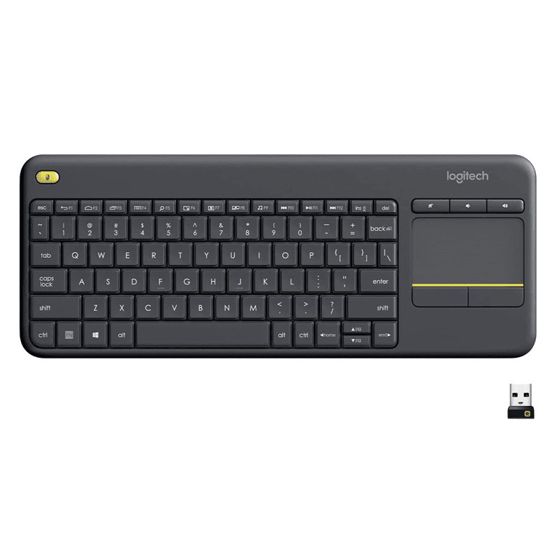 Wireless plug-and-play keyboard with integrated touchpad for total control of your TV-connected PC from your couch. K400 is a quiet, easy-to-use keyboard with a built-in touchpad, plus all the hotkeys Windows and Android users know and love. Complete with media controls that make navigating your PC-controlled TV a breeze